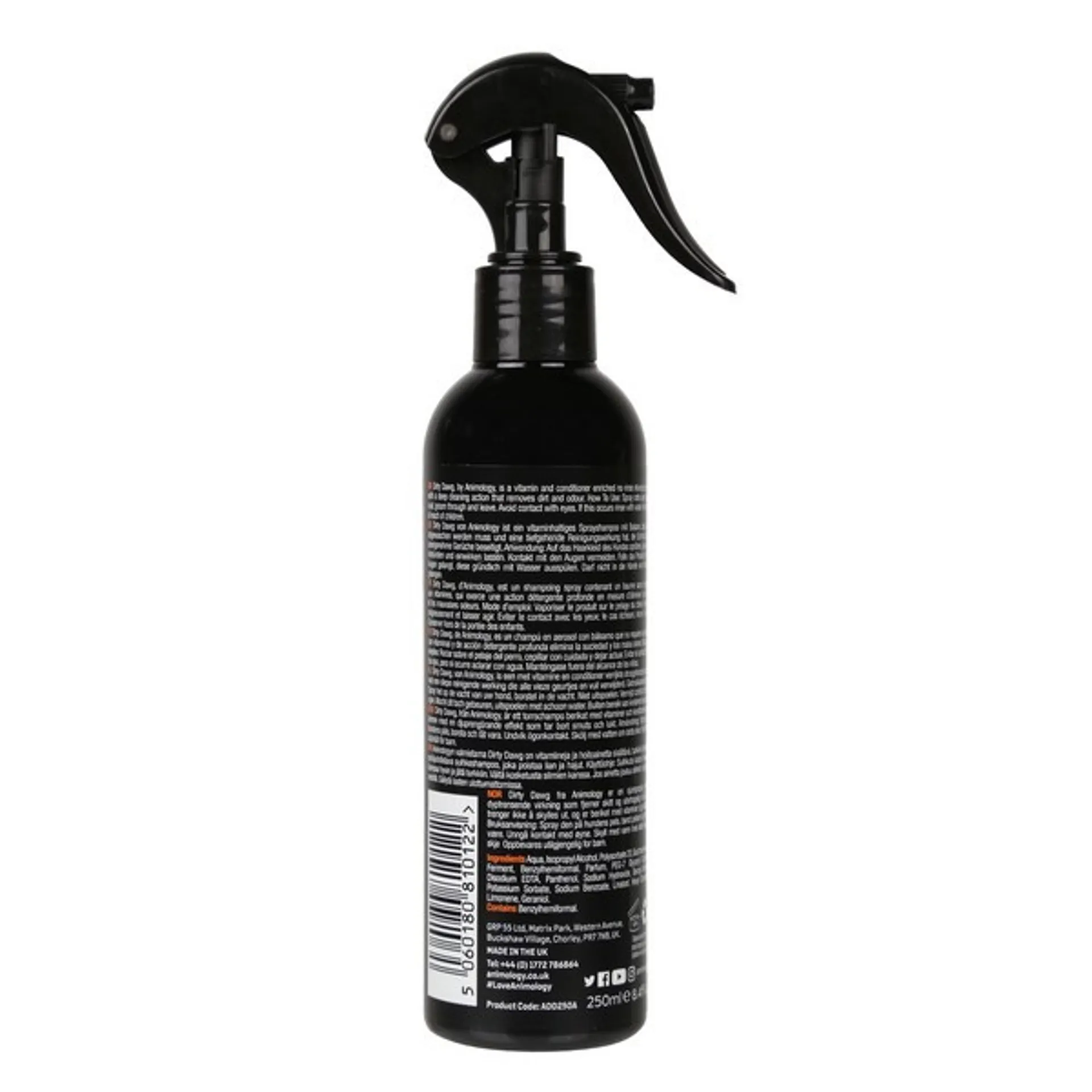 Dirty Dawg is a vitamin and conditioner enriched no-rinse dog shampoo spray with a deep cleaning action that removes dirt and odour. Deodorises and removes dirt Mild and pH balanced formulation Infused with our ‘Signature’ scent for a fresh smelling coat Dirty Dawg is a mild no-rinse dog shampoo spray that helps to effectively remove dirt and odour from your dog's coat. Ideal for use as a 'spot cleaner', the spray is great for use on the go or for a quick clean between washes.
