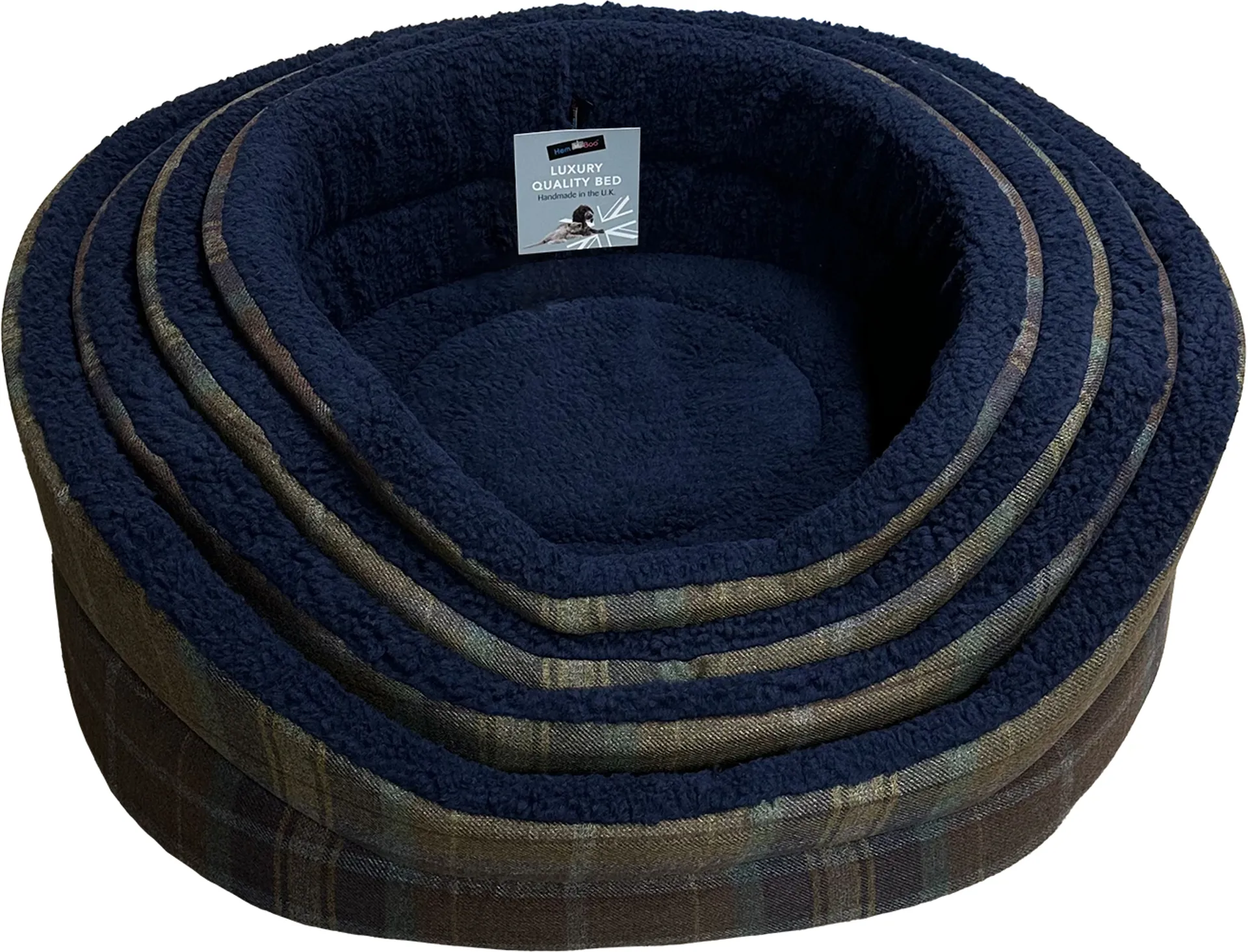 Introduce a touch of sophistication and comfort to your home with our exclusive Country Check oval dog beds—crafted using unique Hem & Boo–designed fabrics that bring heritage charm and unmatched warmth.
