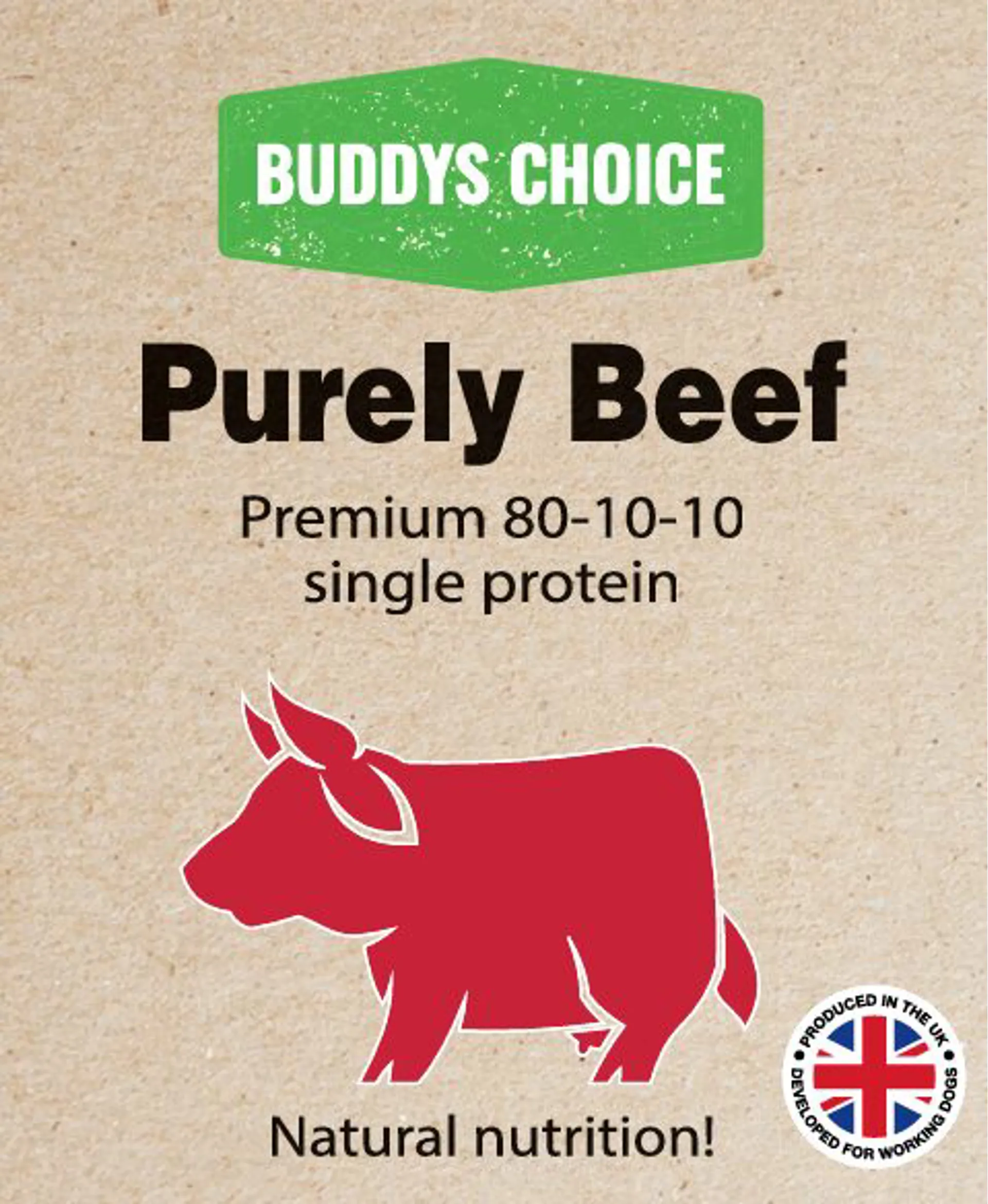 Buddy’s Choice Purely Beef is a premium quality 80-10-10 meal specially formulated for working dogs. Made from 100% beef, including 10% bone, and enriched with 5% beef liver and 5% spleen. This complementary feed supports muscle growth, joint health, and digestive wellness. Packed with high-quality protein, essential fatty acids, and beneficial nutrients, it’s an excellent choice for those requiring a nutrient-dense, natural diet.
