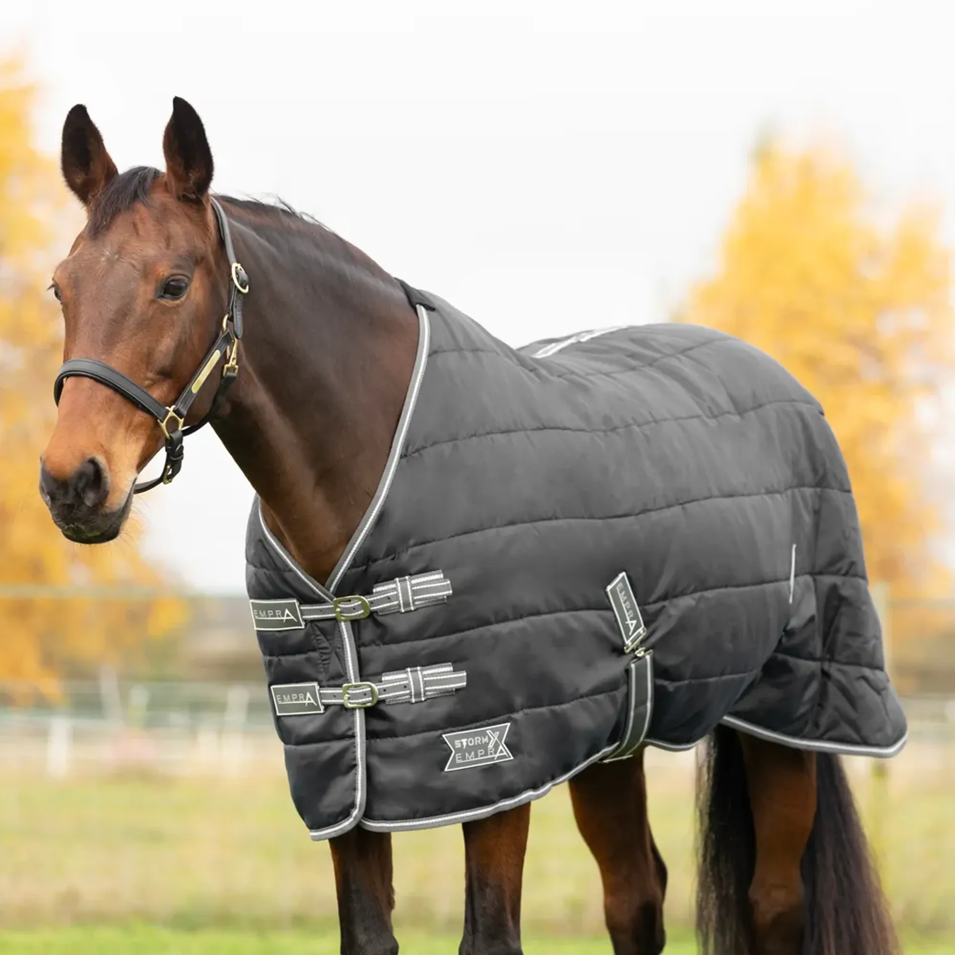 This mid weight stable rug is the ideal choice for when the days and nights turn cold and a heavier layer is required. The revolutionised stormx empra stable rugs are designed using a 420 denier outer material ultimate protection and durability. This luxurious rug has a 200g fill, perfect for use on cooler days and is lined with a smooth and breathable poly-tec lining to offer optimum comfort. Completed with empra cross surcingles, twin buckle chest fastenings and wipe clean fillet string to keep the rug securely in place. Finished with rubber stormx logo badge, padded wither area and generous tail flap for extra protection
